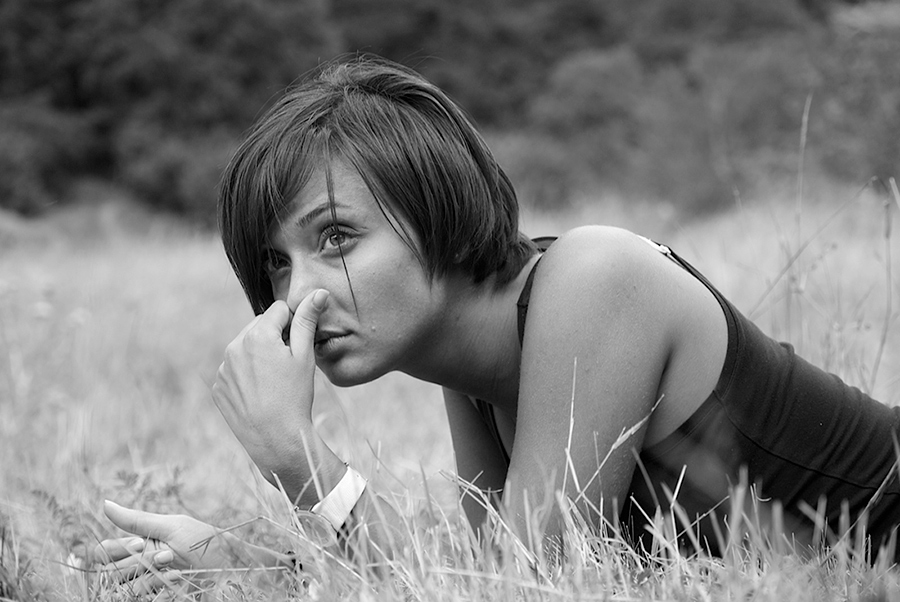 La posizione della mano sul naso disturba un pochino la bella espressione della modella.