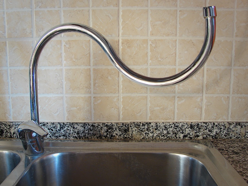 Se non si vuol intervenire sulle linee cadenti, allora consiglierei una distorsione del rubinetto per far combaciare i due piani per dar l'idea di una foto unica (!)