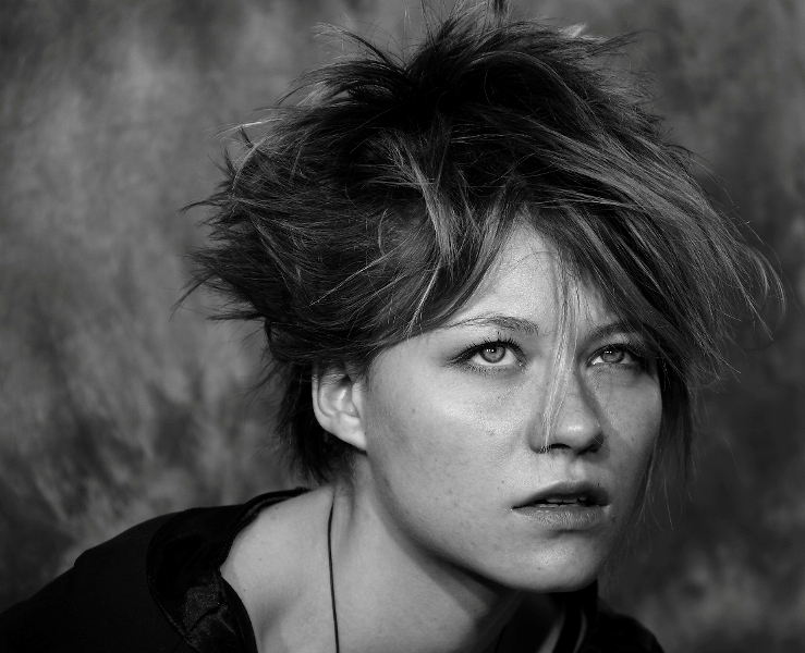 In questa foto, tecnicamente parlando, ci sono delle cose che non vanno... il viso sta all'esatto opposto di dove dovrebbe essere (in alto a sinistra, ora è in basso a destra), la direzione dello sguardo è in alto, meglio sarebbe stato se gli avessi chiesto di guardare più in basso o in basso; il bianconero pur essendo, in primo acchito, buono e bello denso come piace a me ha l'incarnato un po' troppo scuro e contrastato, poco adatto ad una pelle femminile.