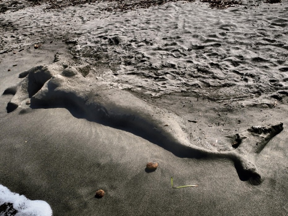 Avrebbe avuto più forza e significato assegnando più peso alla parte bassa nel momento di massimo avvicinamento di un'onda, magari con un tempo che desse una sensazione di mosso. Qui di acqua ne appare una porzione troppo piccola mentre in alto avresti avuto ampio margine per sottrarre più di qualche centimetro.