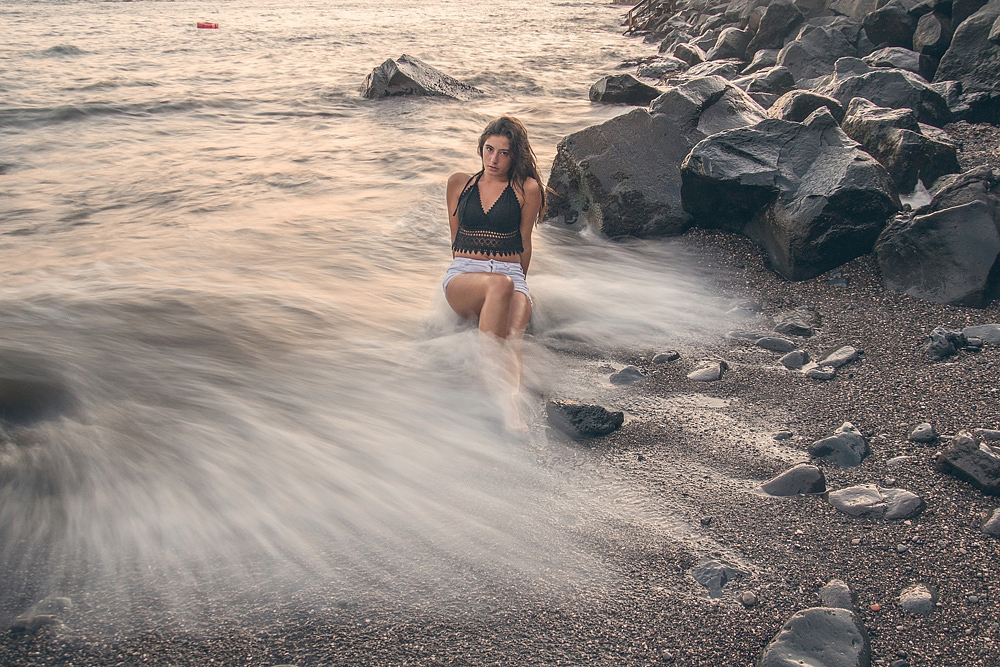 Ciao Gianluca, l'effetto dell'acqua setosa che accarezza la bellissima ragazza è perfetto. Una buona luce al tramonto avvolge morbidamente la modella trasmettendo una bella sensazione di calore in contrasto con l'acqua del mare.