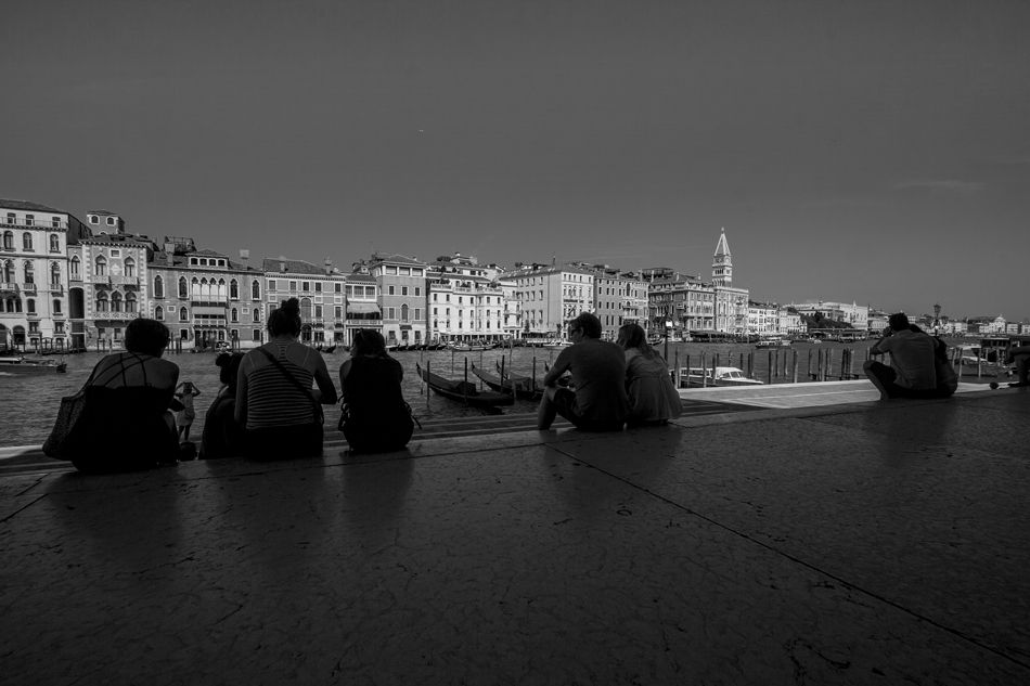 La vedo sottoesposta, le alte luci potevano essere più brillanti e il primo piano più leggibile. Come se fosse stata esposta puramente per le alte luci, senza un po' di compensazione. Il pavimento occupa una porzione a mio parere eccessiva. E' una foto che verrebbe voglia di vedere a colori, sarà anche colpa del cielo così omogeneo, che in b/n risulta un po' monotono. Ad ogni modo una maniera non convenzionale per fotografare Venezia