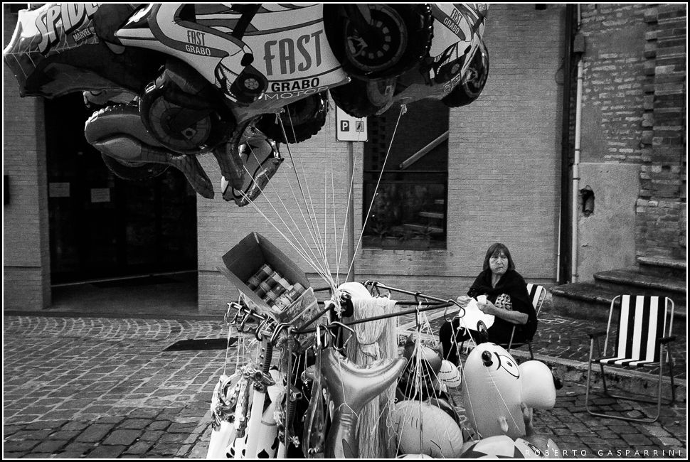 A me poi, questi palloni che si vanno espandendo a raggiera mi danno ancora piu' il senso di movimento verso l'esterno, come se la donna che mangia a boca piena, stia per esplodere Smile