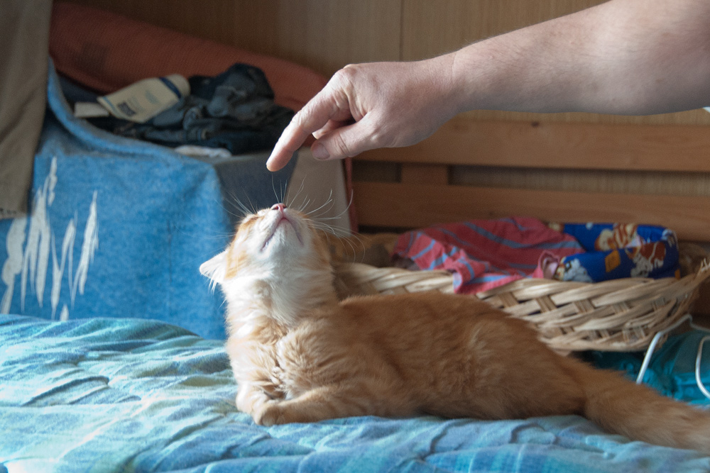 I gatti sono dei gran bei soggetti. Però anche la banale e quotidiana foto del gatto si può e si deve curare meglio. Quindi perché non badare a quelle quattro regolette minime di cura dell'inquadratura che qui nel Forum si sentono ripetere così spesso? Tanto per dirne un paio: attenzione allo sfondo e a non comporre tanto centralmente da mozzare la coda e lasciare spazio inutile dalla parte opposta. Il fuoco è buono su muso e mano, ma non sarebbe stato male avere nitido anche il pelo dell'animale.