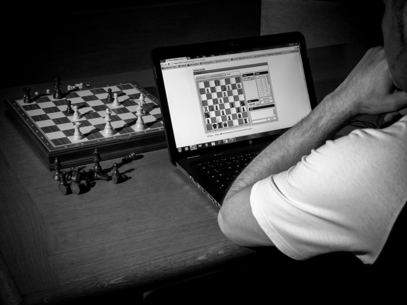 Io l'ho letta in modo diverso. Ho visto una scacchiera abbandonata, per prediligere il gioco online in quanto si può progredire proprio nelle mosse ed avere un compagno che a volte è difficile trovare sopratutto nel gioco degli scacchi.