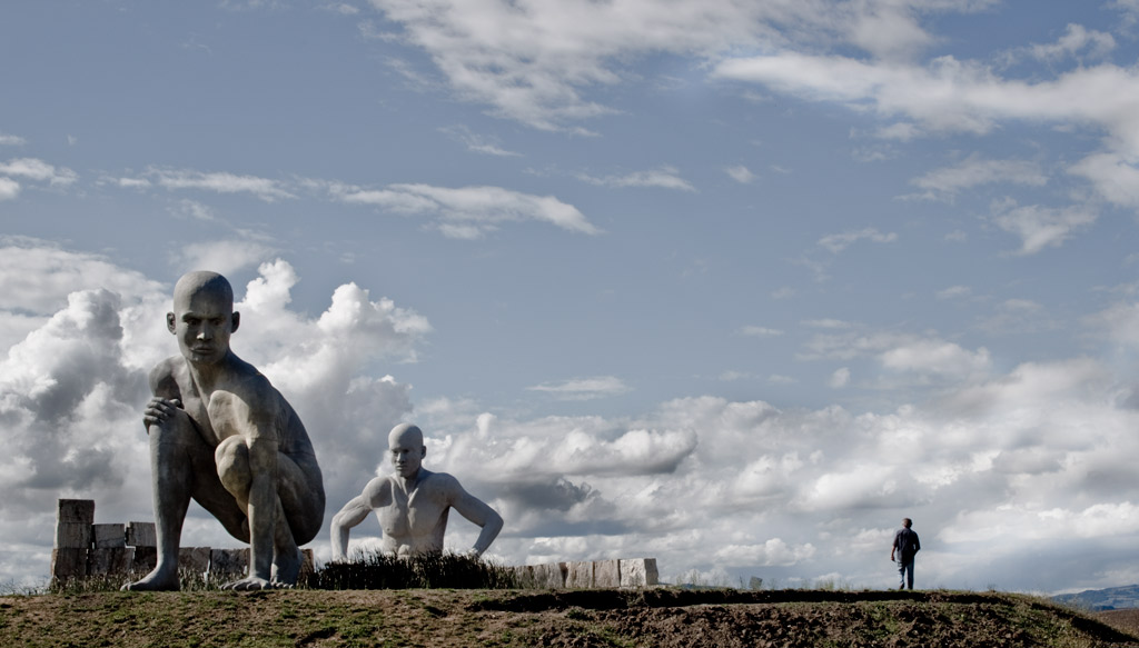 inizialmente ho pensato che la presenza umana mi aiutasse a capire la proporzione di queste opere.Poi visto il cielo ed il contesto ,ho capito quanto siamo piccoli rispetto al mondo..
