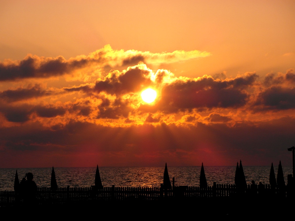 Anche per me non male; il controluce però ha prodotto una velatura che rovina parecchio l'effetto finale della fotografia; c'è poi una imprecisione nell'inquadratura a destra, avresti dovuto spostarla più a sinistra, evedenziando maggiormente quello che sembra un ersonaggio; e la linea dell'orizzonte pende visibilmente a sinistra, elemento che può sembrare superficiale, ma denota una scarsa cura in post produzione.