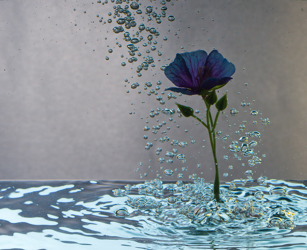 Un po' di profondità di campo mi serve, però. Ho provato a convincere il fiore a star fermo, ma seguiva con una certa passione le bolle