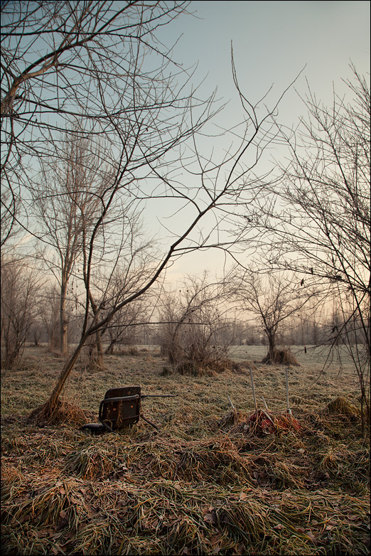 I toni sono i tuoi...delicati come la luce. Due sedie rovesciate, un fuori luogo...l'anomalia di un contesto o semplicemente ciò che resta...Molto bella.