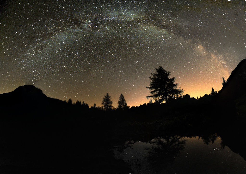 | Citazione: | | Non so se sarebbe stato possibile, ma certo se avessi potuto riprendere nel lago l'intero riflesso del semi-anello di stelle, l'impatto sarebbe stato ancora più incredibile. |