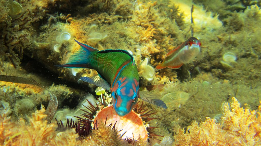 Questo pesce si chiama Donzella pavonina ed è originario dei mari tropicali, da circa 30 anni si trova anche da noi nel Mediterraneo, ma l'ho fotografato anche alle isole di Capo Verde. Effettivamente ha dei colori stupendi.