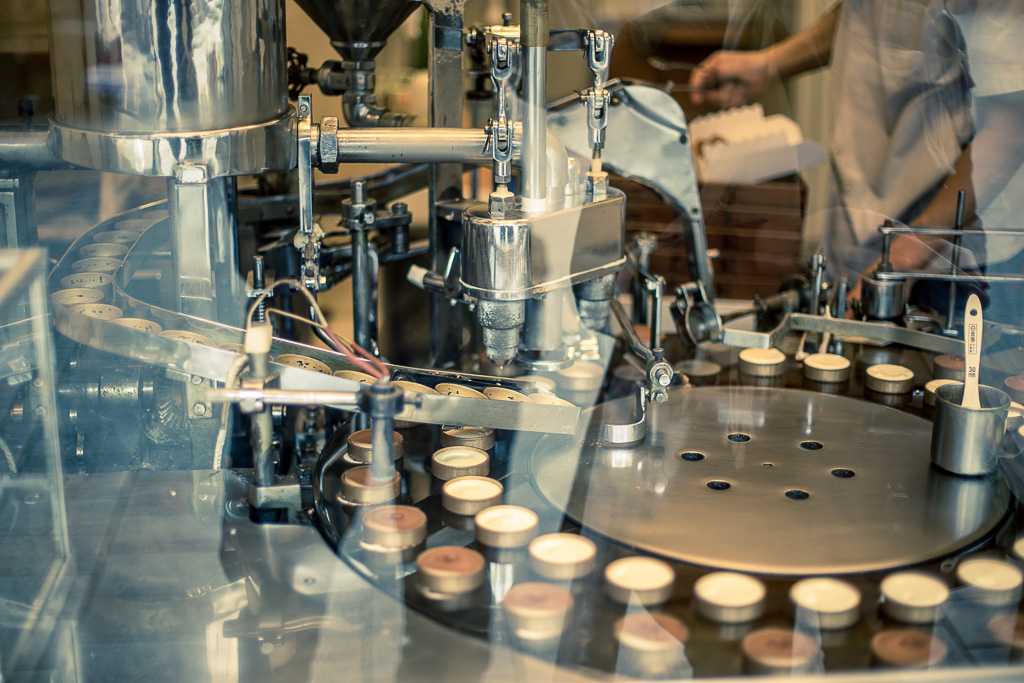 L'operatore si limitava a riempire con il preparato il serbatoio cilindrico in alto a sinistra e ad impacchettare il tortino una volta cotto.
