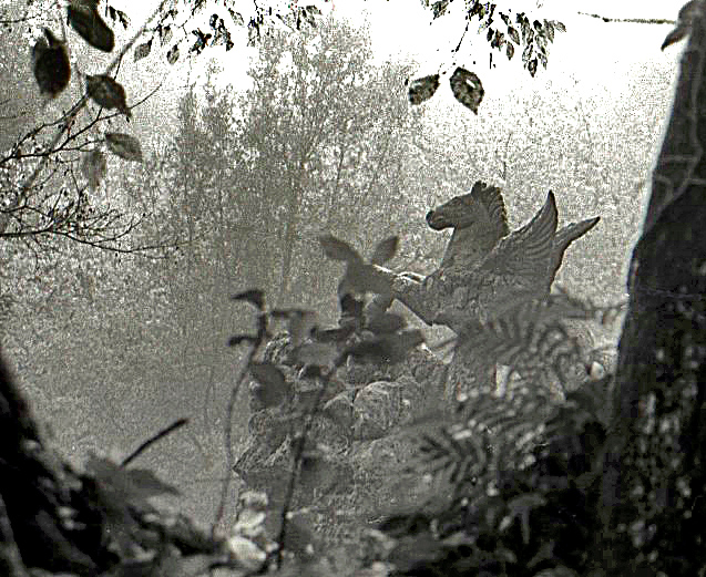 In verità li ho lasciati apposta, volevo far sembrare come se io fossi nascosto dietro l'albero a scrutare Pegaso che non mi doveva vedere, creando un effetto cornice con albero e arbusti intorno a Pegaso.