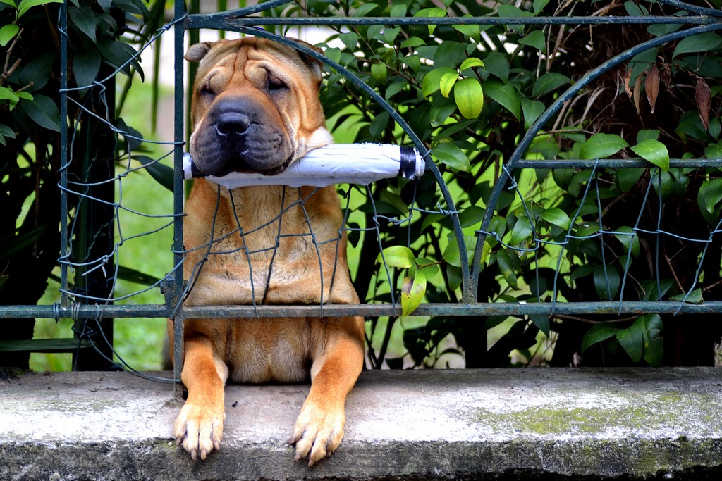 Grazie Ale, in realtà questa è la sua espressione normale, stava solo osservandomi mentre passavo vicino al suo territorio. Il padrone molto premurosamente ha fissato un riparo morbido dove abitualmente appoggia il musetto per osservare chi passa.