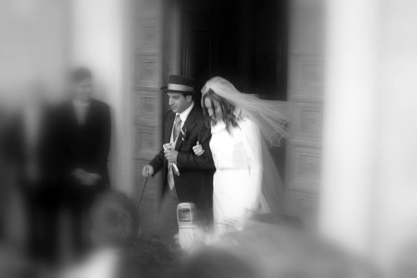 Scusa ma questo scatto proprio non va: l'effetto veramente eccessivo che hai applicato in post la rende più un artwork che una foto (ma perchè poi cancellare i volti delle persone plaudenti, che potevano essere interessanti?). Se poi vediamo solo il soggetto fotografato... beh, è una coppia che esce dopo essersi sposata, un pò mossa, e il viso di lei è pure coperto...