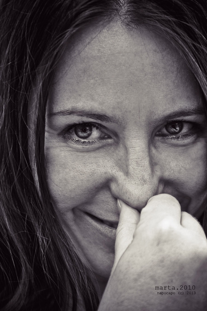 Mi piace quel sorriso che si intravede, anche solo per metà. Così come mi piace la scelta del viraggio che trovo particolarmente adatta su questa posa e questo volto.