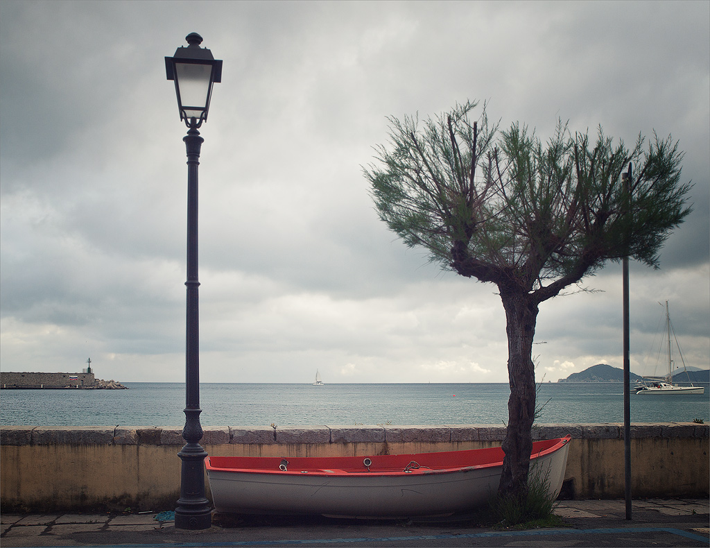 Mi intriga la pacifica e tranquilla convivenza di un Tamericio a cui sono stati appena tagliati i capelli con un lampione... poi c'è la barchetta che sembra dire: "Posso stare qui con voi?"...