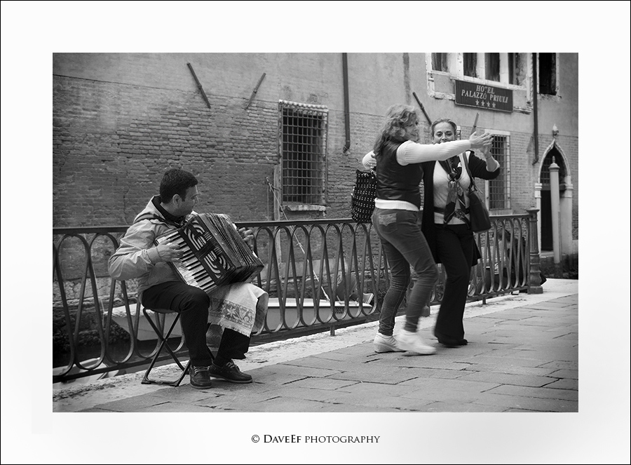 Molto bello questo ballo improvvisato su un canale di Venezia! Ottima composizione e buon bn.Il mosso del piede aggiunge dinamismo alla scena.Complimenti!  _________________ Sergio Demitri https://www.flickr.com/photos/124946035@N02/ |