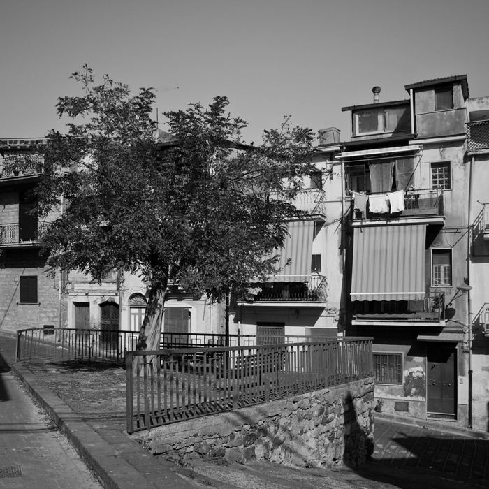 Attraente questa 'penisola' sospesa, con albero e panchine: viene da immaginarsi la sera in paese con le persone che chiaccherano, affacciate in terrazza o sedute sotto l'albero...non so se questo fosse l'aspetto che ti ha attirato, ma in tal caso forse bisognava cercare un angolo di ripresa più funzionale, che staccasse di più la suddetta 'penisola' e ne definisse meglio la posizione rispetto alle costruzioni circostanti. Più facile a dirsi che a farsi, data la sovrabbondanza di elementi presenti  |