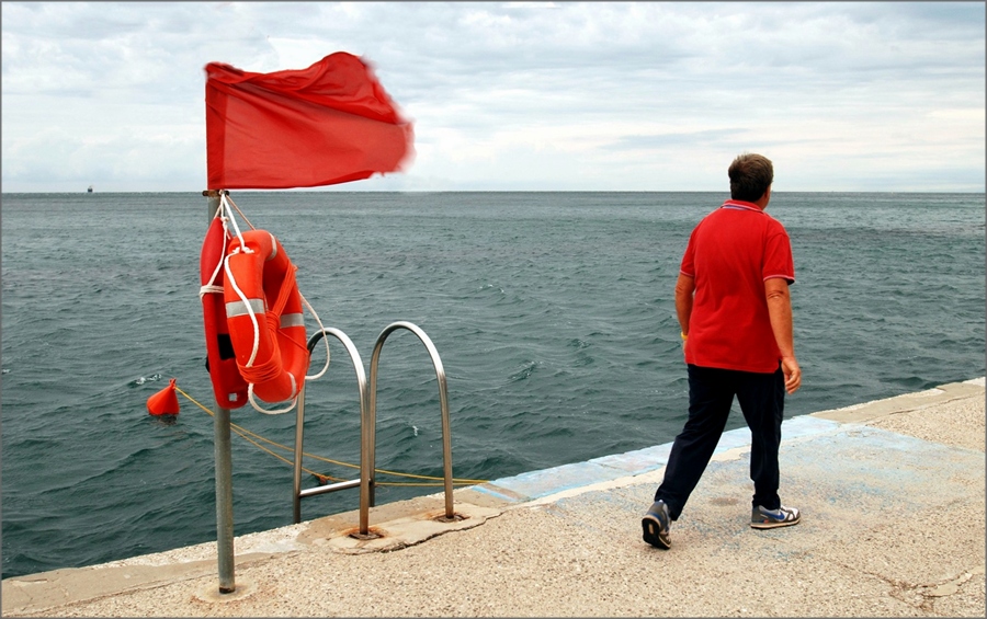 Ritornando alla foto di oggi, interessante per composizione ed equilibrio cromatico, però l'occhio cade sempre su quel tratto di orizzonte sotto l'estremitá della bandiera, forse un clone frettoloso!