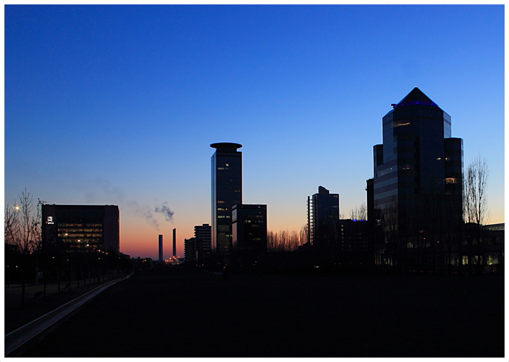 Uhm.. Direi che il tramonto è bello, ma gli edifici sono ancora troppo "dettagliati" per essere una Silhouette, ma troppo poco dettagliati in caso contrario... credo sia recuperabile in PP!  |
