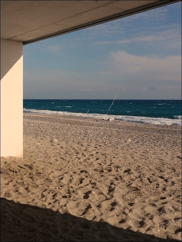 Come analisi supplementare della stessa -mia- fotografia c'è un aspetto sigificante che esula dalla resa grafica e sono le canne da pesca; queste, anche se appena visibili, senza la presenza umana aggiungono all'immagine il senso di solitudine che in origine aveva attirato la mia attenzione.
