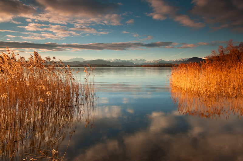 Ottima compo, belli i riflessi. Abbasereinun po' le tonalità del canneto. Così, mi sembra che "spari" troppo.