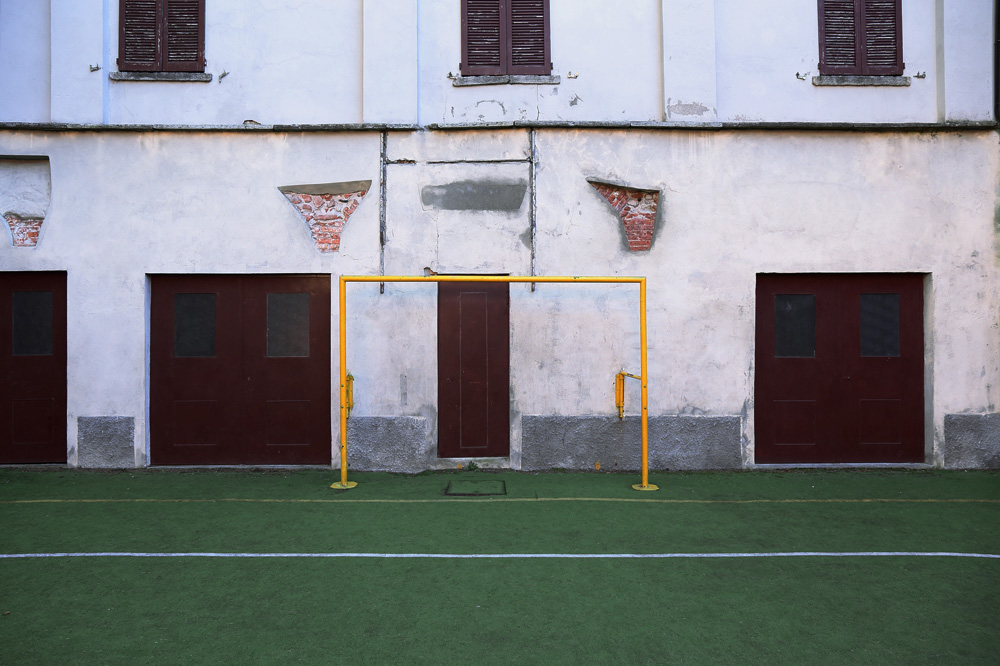 Un campo da calcetto ricavato e adattato all'interno di un cortile o perlomeno a diretto contatto con abitazioni...