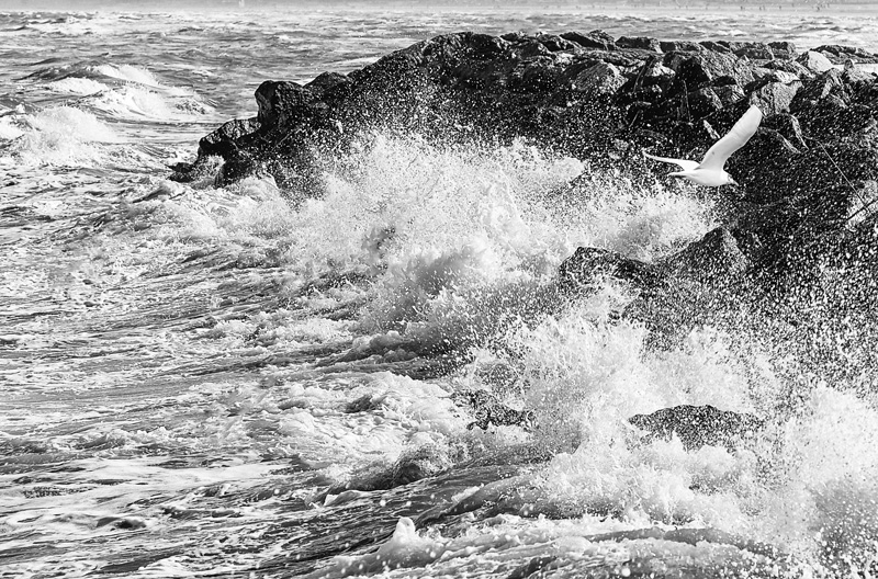 Ha il limite dell'altra per quanto riguarda la visibilità del gabbiano. L'energia delle onde è abbastanza trasmessa ma forse si poteva scegliere un'inquadratura più ampia, a cominciare dall'orizzonte messo lì a ridosso del margine. Avrei dato ai grigi del mare un pizzico di "pienezza" e articolazione tonale in più.