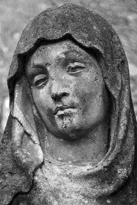 Il taglio stretto mette bene in risalto il volto della Madonna incorniciata nel suo manto, la rigidezza della materia è ben resa, quasi palpabile ma non attenua per nulla la sensazione di dolcezza che la statua evoca.