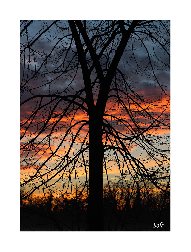 Una bella silhouette, ma a questo punto, visto che le cime e i rami laterali li hai già tagliati ti proporrei un formato quadrato eliminando la siepe in basso per dare maggiore drammaticità e astrattezza al tuo scatto.