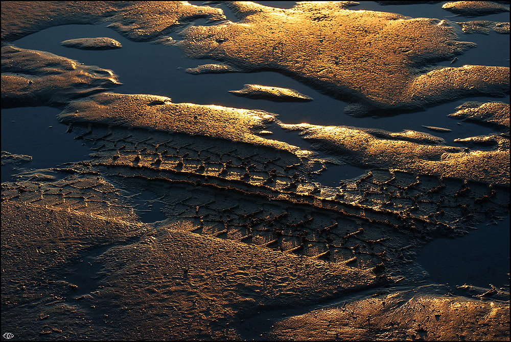| Se non fosse per le tracce del pneumatico sembrerebbe il pianeto su di un tramonto dorato ripreso da grande altezza |