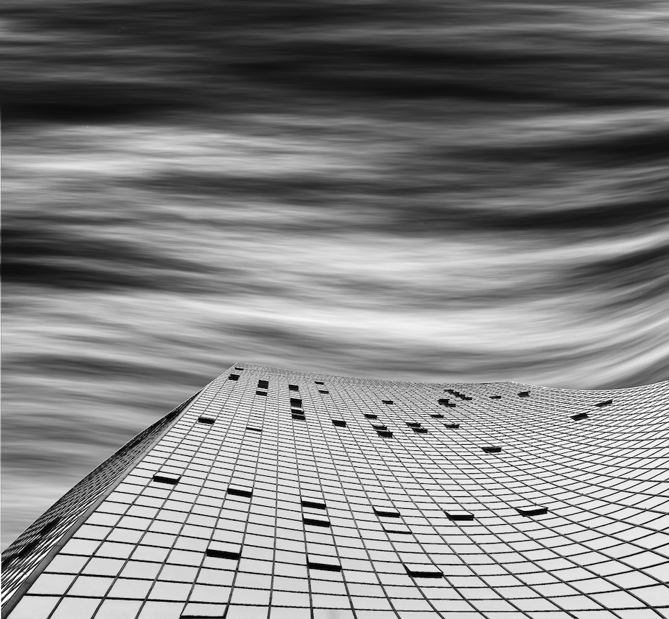 La foto è sicuramente molto riuscita principalmente per l'idea di accompagnare la sinuosità architettonica con quella delle nubi.