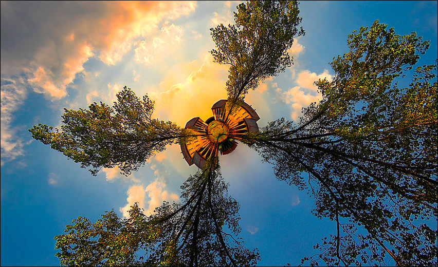 L'esplosione degli alberi e la vividezza dei colori crea un'effetto strabiliante, accentua le proporzioni in modo esagerato, di per se già impossibili, donando alla scena un'atmosfera fantasy, fa molto Ursula Le Guin.