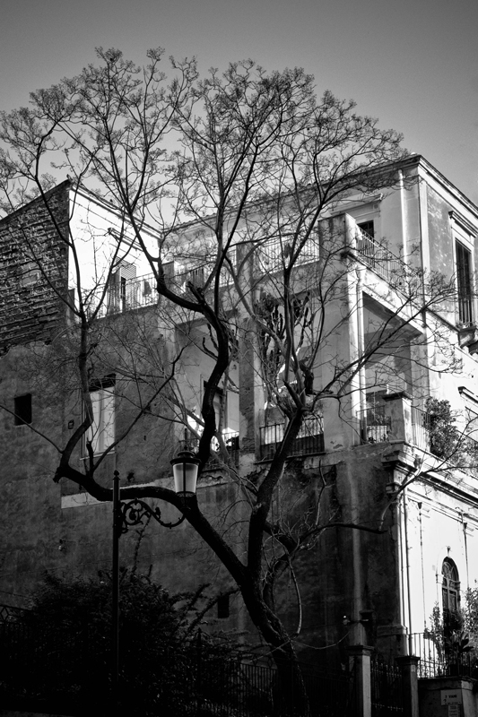 Non mi convince Smile ...la costruzione seminascosta dai rami mi sembra molto interessante, ma il punto di ripresa, peraltro obbligato, non è efficace per restituirne la decadente bellezza, ed anche l'eventuale relazione suggerita con il reticolo di rami spogli che la nasconde parzialmente, perde di vigore.