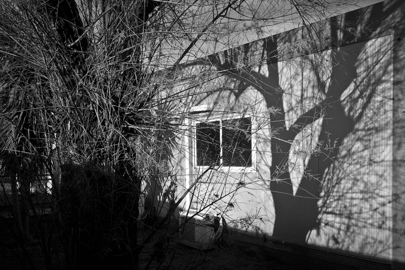 Interessante il confronto tra questa e l'altra dello stesso soggetto. In quella fai ruotare l'intrico di elementi irregolari (rami, tronchi, ombre) attorno ad un fulcro geometrico che dà stabilità visiva al tutto: c'è, sì, molto materiale, ma c'è anche un domatore che lo tiene a bada. Qui... il domatore è sopraffatto e vince il caos.