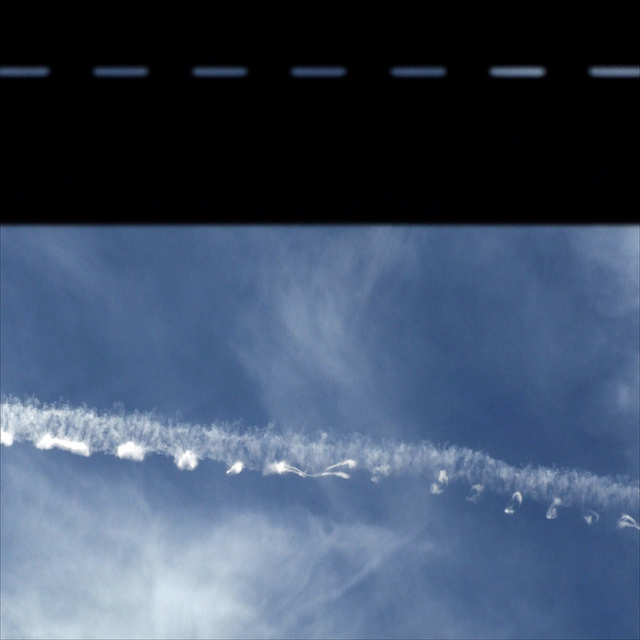 Il mio intento era quello di creare un accostamento grafica tra il tratteggio della persiana e quello della scia...peccato che quest'ultima abbia solcato il cielo in obliquo.