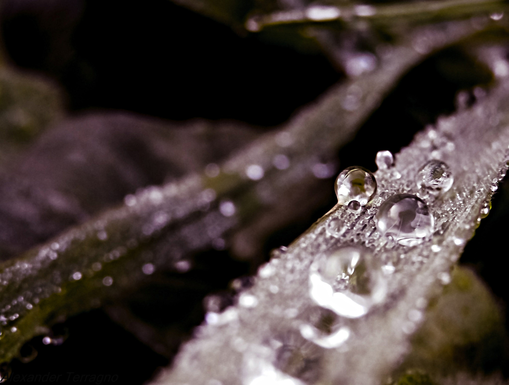 Prima di analizzarla a fondo...sarebbe interessante sapere se è una foto eseguita a mano libera o cavalletto, e se la Olympus consente un maggiore ingrandimento, uno zoom...la relazione tra lunghezza focale e minima distanza di ripresa modifica la PDC utile...ciò permetterebbe di comporre sfruttando maggiormente una messa a fuoco selettiva ed ottenere maggiore sfocato attorno, valorizzando il punto messo a fuoco...che in questo caso, tra l'altro, sembrerebbe apprezzabilmente nitido, ma reso confuso dalle gocce in primo piano sfocate...sarebbe stato meglio il contrario...ed una attenta diffusione della luce, che tende a bruciarsi nel riflesso dentro le stesse goccioline...Concludo dicendoti di sfruttare ancora questo interessante soggetto...stando più attento a cosa includere nel fotogramma, ed a mettere al primo posto il punto di fuoco....al massimo dello zoom...e con cavalletto.