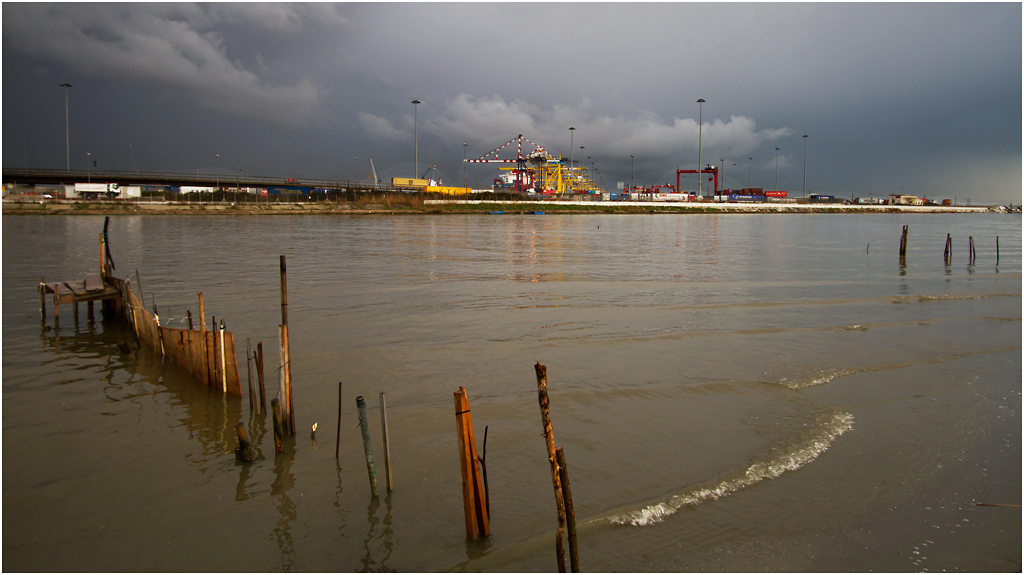 Foce dello scolmatore dell'Arno al Calambrone, con le attrezzature del porto di Livorno sullo sfondo. 26/2/2014 ore 16:38:03, punto di scatto 43° 35' 2.32'' N, 10° 18' 5.03'' E. Attrezzatura ausiliaria usata: l'ombrello... _________________ Franco fotografato da Onaizit8 - Stando a Pisa posso farle anche pendere un po', ma mai un pò con l'accento ( ) o un po senza apostrofo ( )!