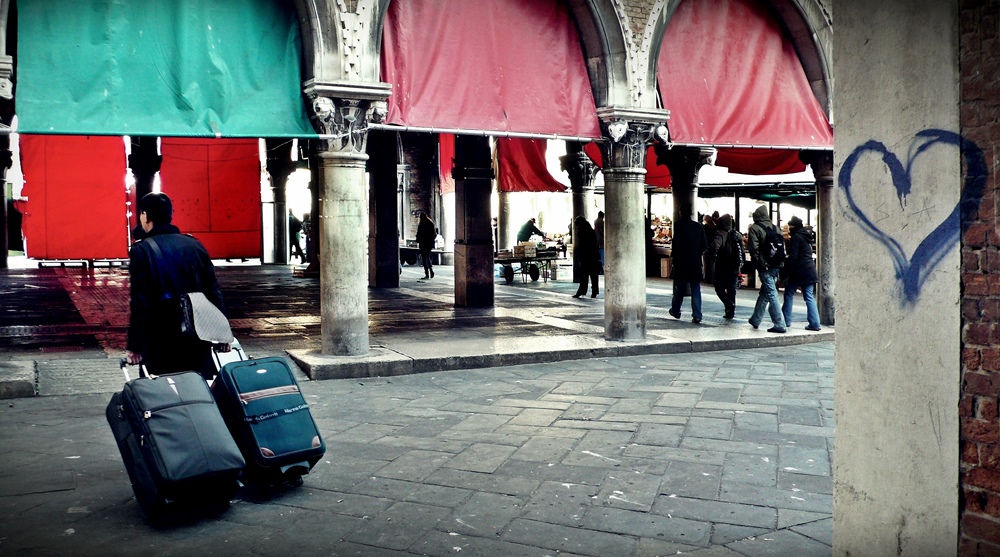 Tenerissima e ben realizzata (i due trolley e l'uomo ricordano un cuore rovesciato), complimenti