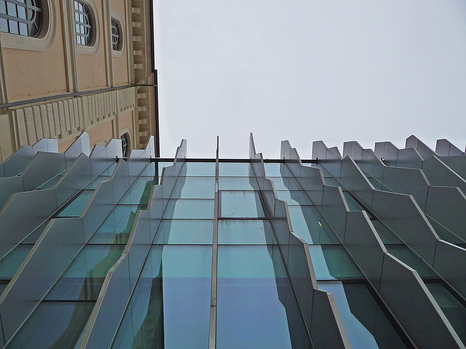 Presa singolarmente la terza è sicuramente più interessante, ma a me piaceva anche la commistione, appunto, tra un edificio classico e uno moderno, che fanno parte della stesa struttura, senza soluzione di continuità.