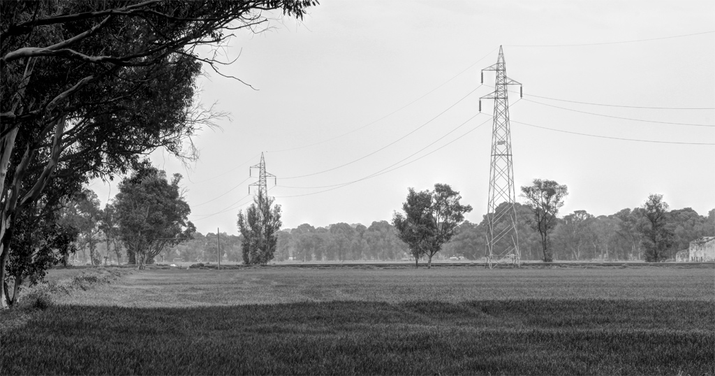 La composizione è buona e il paesaggio "inquinato" dai tralicci mi piace, peccato per il BN troppo grigio e privo di dettagli... hai occhio Tecch, cerca di migliorare la tecnica Ok!