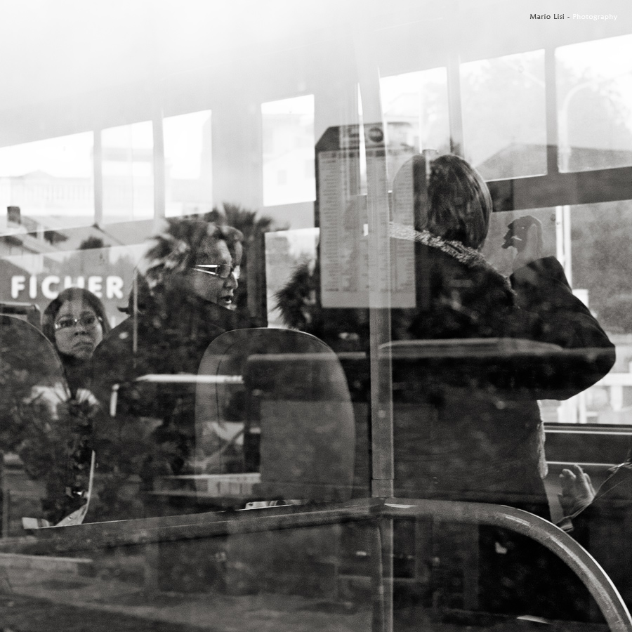 Una scena di normale quotidianità che per alcune espressioni ed indecifrabili presenze genera una certa inquietudine che i riflessi sul vetro non attenuano.Complimenti!  |