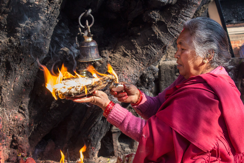 E' un rito di purificazione in un tempietto all'esterno dedicato a Shiva. |