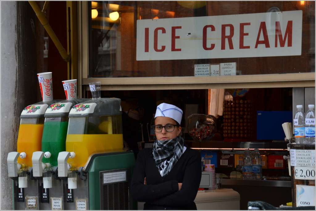 ma poi si va ad aggiungere alla posa della ragazza, che da tutta l'idea di patire il freddo ne vien fuori una candid efficace e divertente.