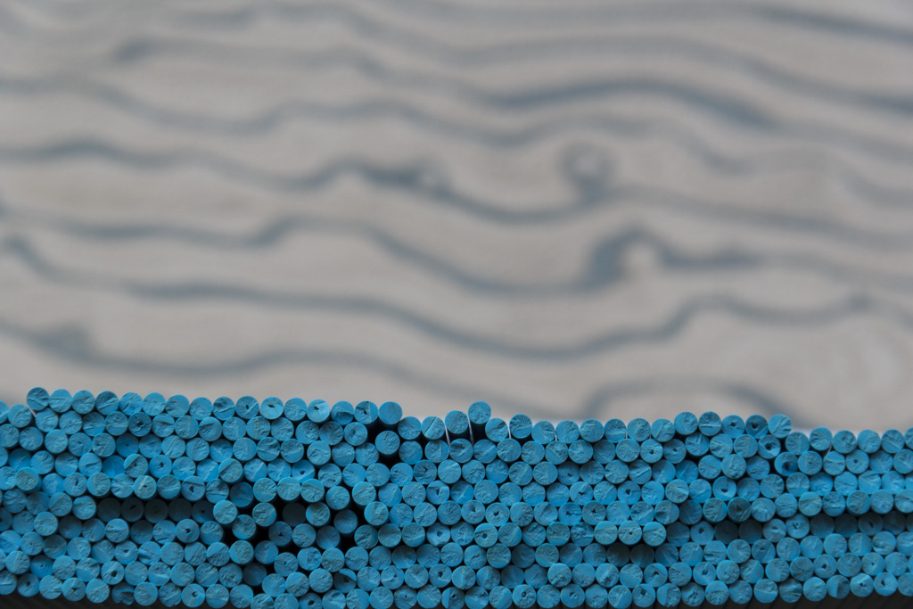 Forse merita una spiegazione: lo scatto riprende lo schienale di una sedia, fatta di cannette, dall'alto con sullo sfondo il piano del tavolo a corredo.