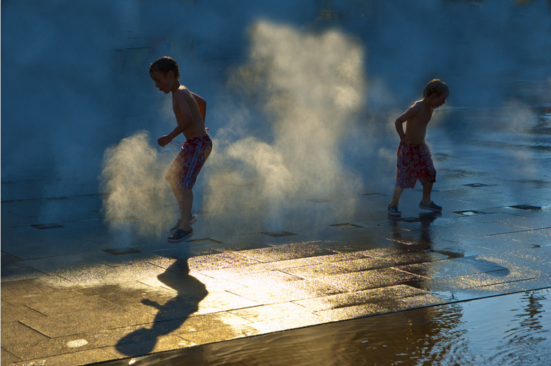 Non sono sicuro di aver capito dove si "svolge" la scena e cosa sia quel fumo sullo sfondo, sembrerebbe vapore che esce dal pavimento. Comunque, foto piacevole. Mi piacciono l'inquadratura, i colori e, ovviamente, l'attimo colto. Apprezzo particolarmente l'ombra del bambino a sin. Chissà se un leggero aumento del contrasto non sarebbe stato utile per renderla più scura (l'avrei preferita) senza danneggiare il resto della foto.Ciao _________________ Ilio |