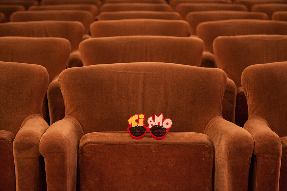 Ordine geometrico e monotonia cromatica. Ma un bizzarro messaggio che sembra fuggito da un fumetto riesce a rendere il tutto incongruente. Surreale.