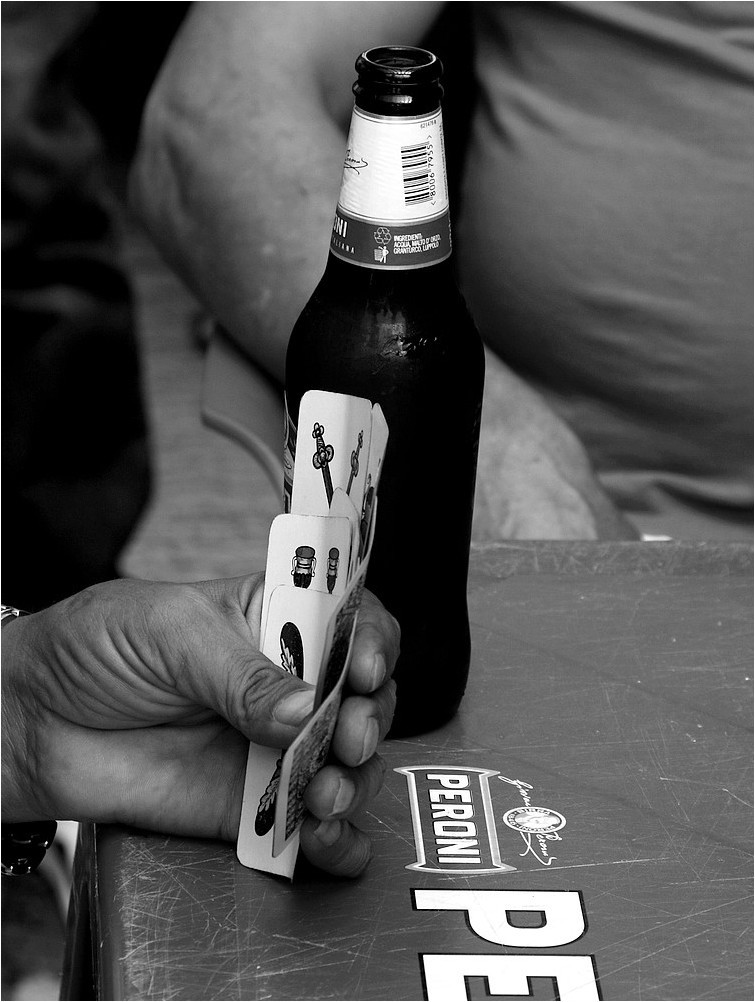 La panza, le carte, la birra...manca solo una sigaretta ed il 'prototipo' del giocatore c'è tutto...bel BN e nitidezza, come tuo solito; il taglio forse è un po' soffocato ai lati, ma è questione di gusti...ciao  |