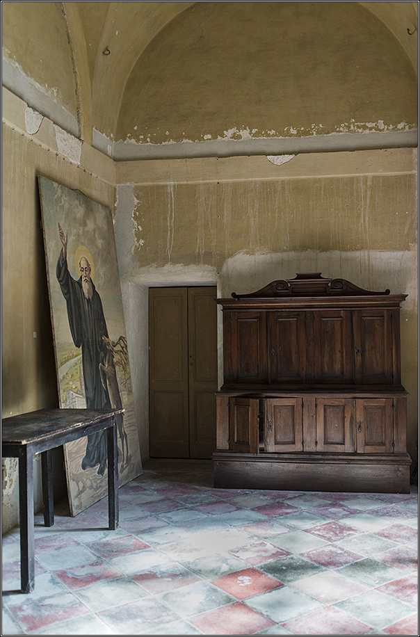 Condivido quanto detto da Nicola; la presenza dell'arco incompleto però, a mio avviso, si avverte abbastanza e forse una rifilatura in alto non ci starebbe male...l'intimità dell' ambiente, suggerita dalle tonalità calde e dalle suppellettili 'vissute', mi sembra che ne guadagni.